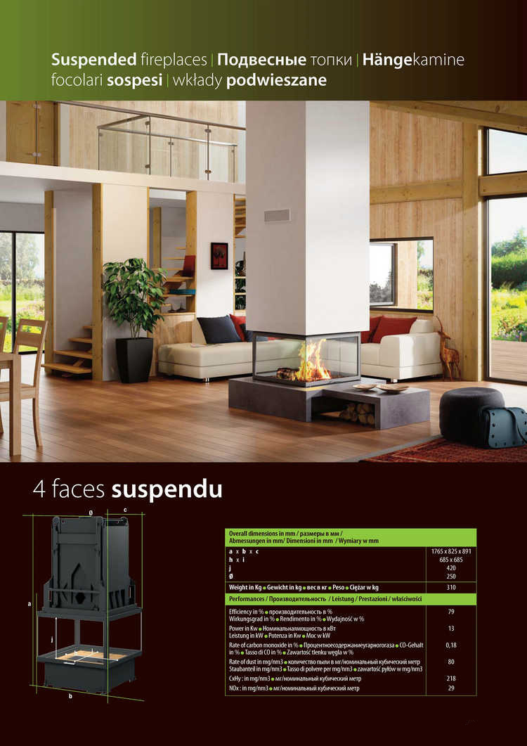 法國TOTEM懸掛真火壁爐-4Faces Suspendu 800 Technika
